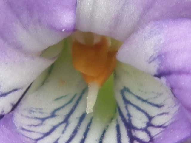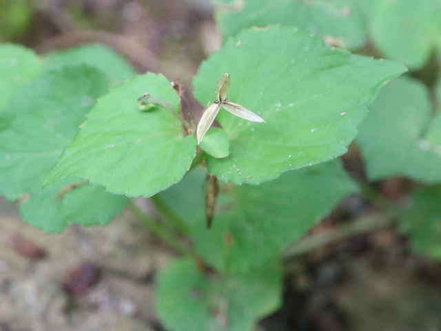 | ▼2006年4月23日 西忌部 | ▼距は白い。 | ▼葉は丸く、縁が波うつ。 |