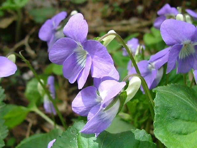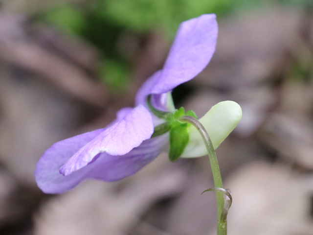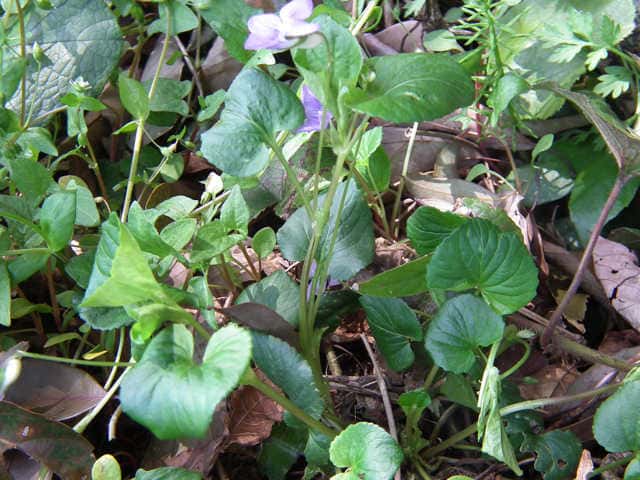 | 多年草 北海道〜九州の寒冷な多雪地に多い。花期の草丈は15〜25cm。花の頃から地上茎が目立ち、ほとんどの花が地上茎の途中から伸びる花柄につく。花は直径2cm前後で、タチツボスミレに似ているが、やや大きめで唇弁の紫色のすじが細かい網の目状になる。花の色はやや赤みが強い淡紫色で、距が白いのも見分けるときのポイントのひとつ。葉は幅3〜6cm。タチツボスミレよりまるみが強く、明るい緑色で、葉脈はへこんでいる。基部は深い心形になり、先端はちょこんととがる。葉質はやわらかく、波打っているものが多い。托葉は櫛の歯状だが、タチツボスミレに比べると幅が広くて切れ込みが浅い。花期は4〜6月。(日本のスミレ) 学名は、Viola kusanoana スミレ科スミレ属 スミレの分類 |