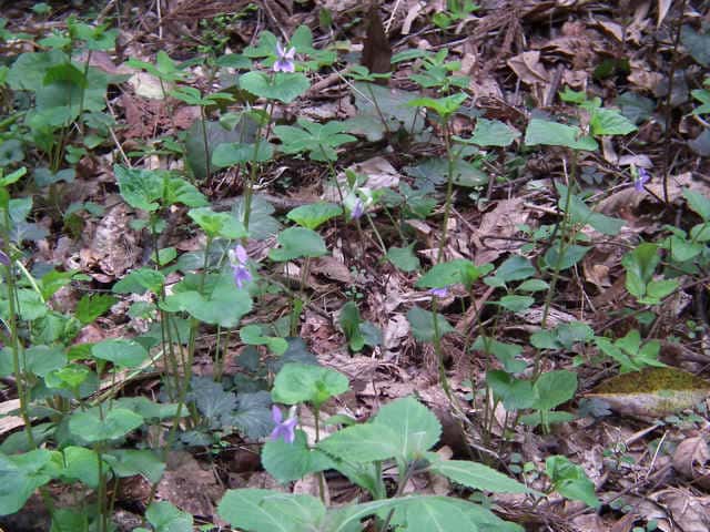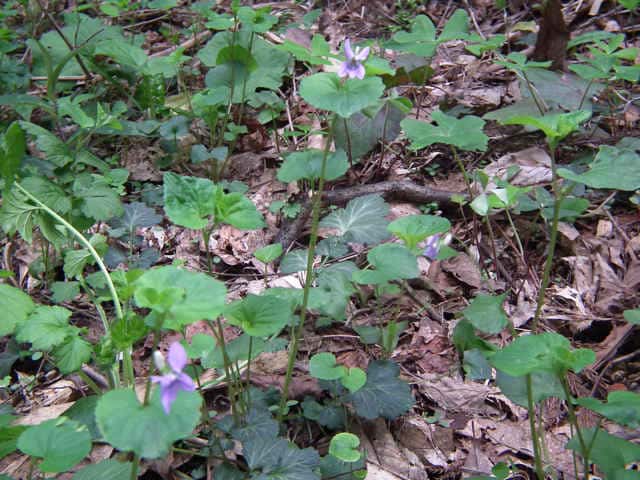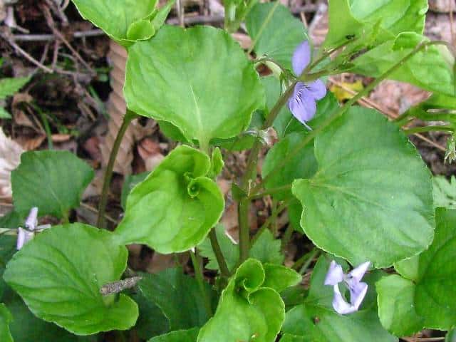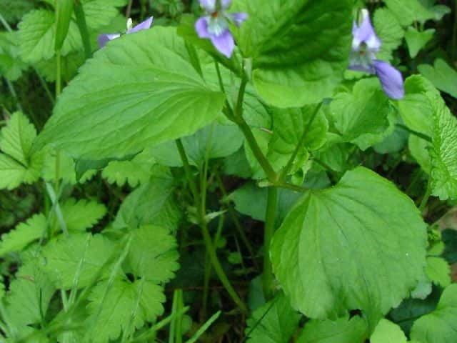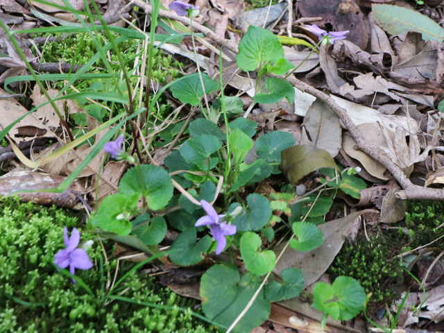 | ▼葉はオオタチツボスミレで距が紫色のためタチツボスミレとオオタチツボスミレの交雑種ムラカミタチツボスミレの可能性がある。 Viola grypoceras x V. kusanoana |