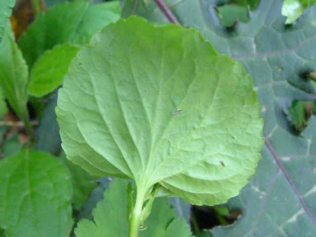 | ▼葉は丸く、縁が波うつ。 | ||