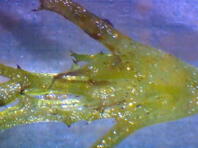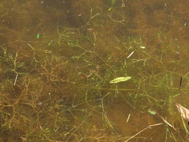 | ▼葉の小さな尖った鋸歯。 | ▼切れ藻が浮いていた。 | |