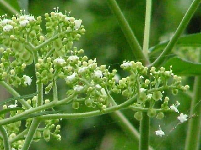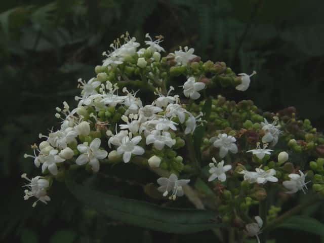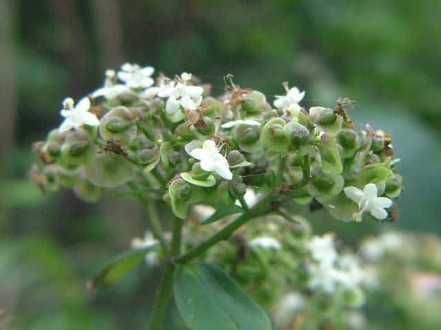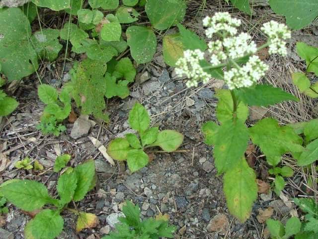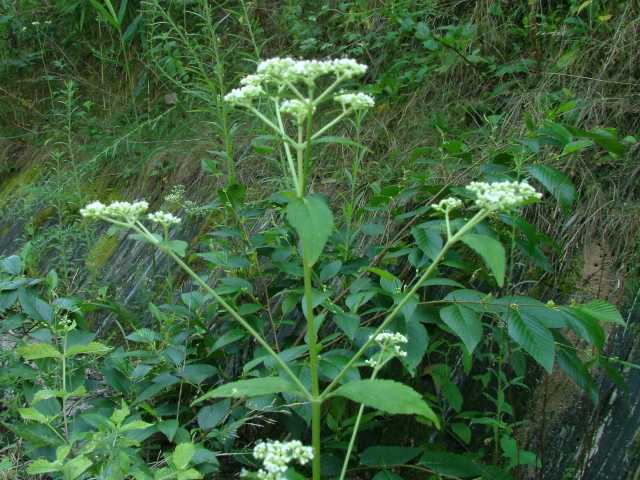| 多年草。 北海道〜九州の日当たりのよい山野にごくふつうに見られる。高さ0.6〜1m。根元から長い匐枝をだし、先端に新苗をつくる。茎の下部には白い粗毛が多いが、上部では少ない。葉は対生し、長さ3〜15cm。多くは羽状に分裂し、裂片は卵状長楕円形で頂裂片が最も大きい。花は白色で、散房状に多数つく。果実はそう果、長さ約3mmの倒卵形で、小苞が大きくなって、果実を取り巻き、うちわのような翼になる。花期は8〜10月。(野に咲く花) 学名は、Patrinia villosa スイカズラ科オミナエシ属 オトコエシ種内における高次倍数体間の交雑によるものとして、オトコオミナエシがあり、黄花や白花が混在する。 仲間のオミナエシは匍匐枝を出さず、地下茎で増え、花は黄色。 |