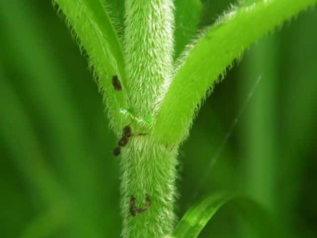 | ▼匐枝で幼苗がつながる。 | ||
