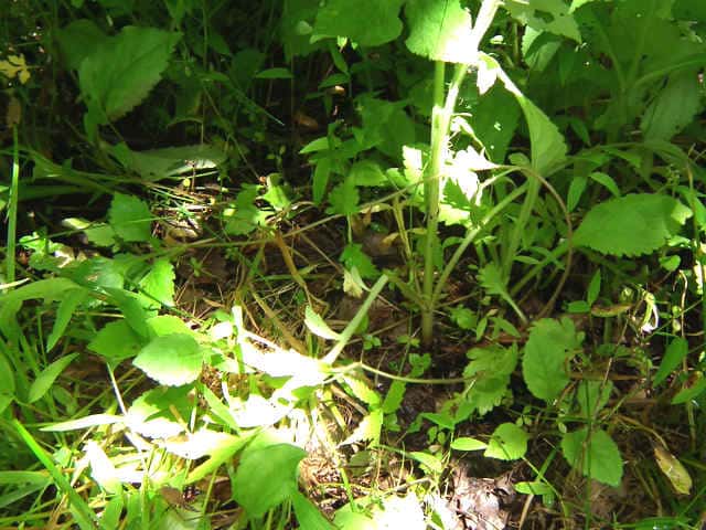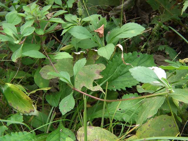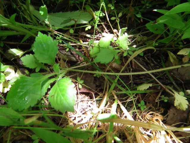 | ▼茎の途中の葉腋から匐枝を出している。 | ||