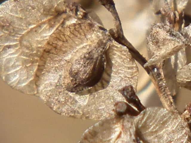 | ▼果実はそう果、長さ約3mm。 | ▼裏面。 | ▼そう果の中の種子は長さ約2.5mm。 |