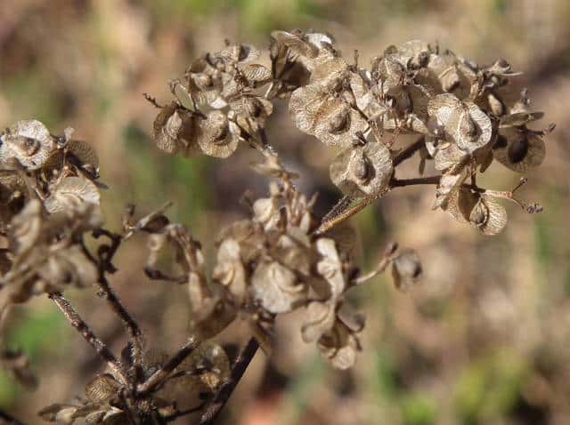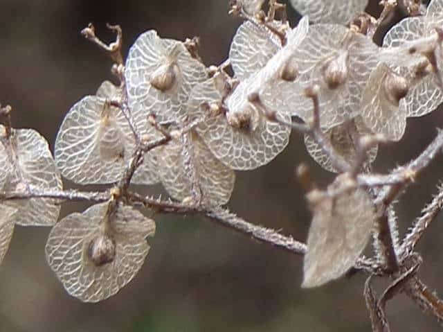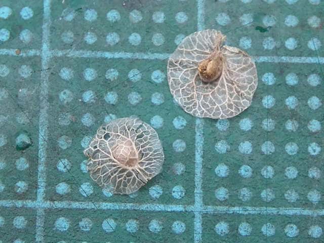 | ▼小苞は直径約6mm。 | ▼翼状の小苞の上に果実が乗っている。 | |