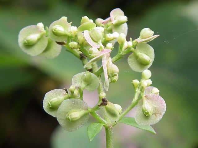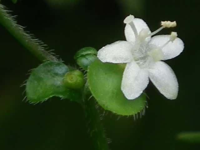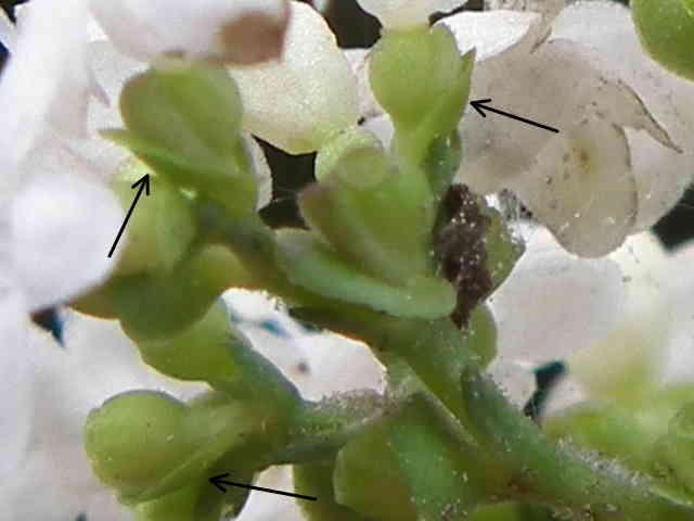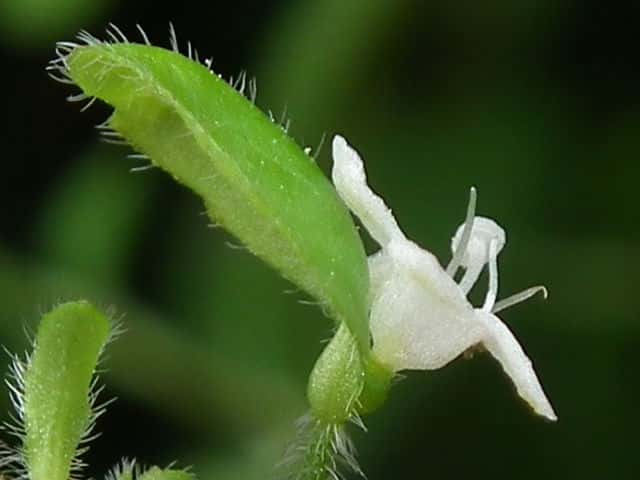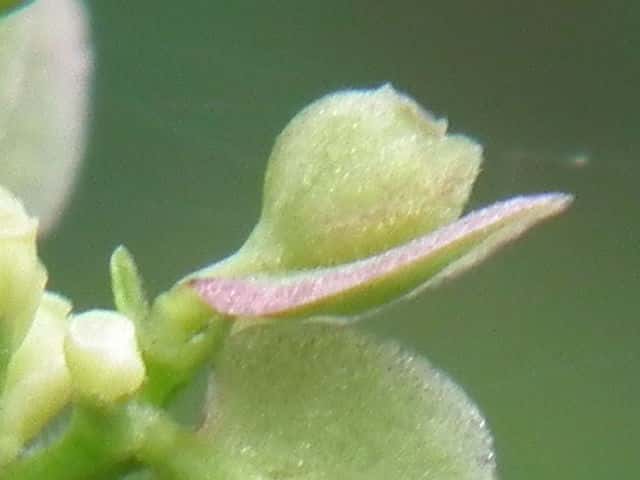 | ▼雄しべは4個、雌しべは1個。 | ▼花は直径約6mm。 | ▼花の下の子房に接して小苞がつく。 |