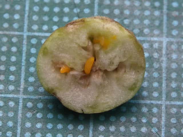 | ▼横断面。幼虫が入っている。 | ||
