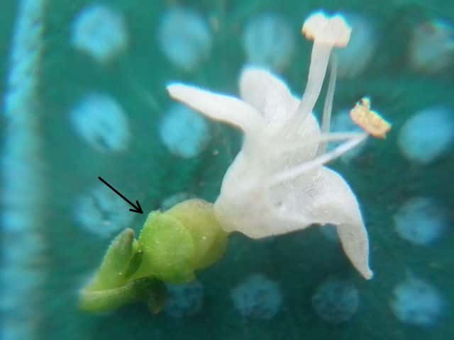 | ▼まだ小さな小苞が見える。 | ▼直径約6mmの小苞が果実を取り巻く。 | |