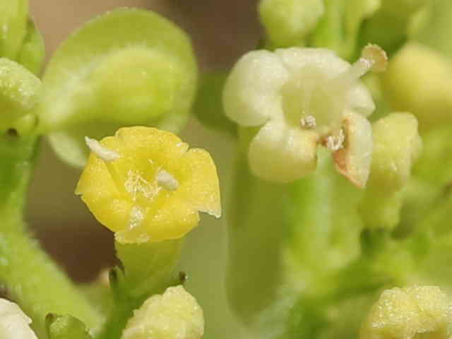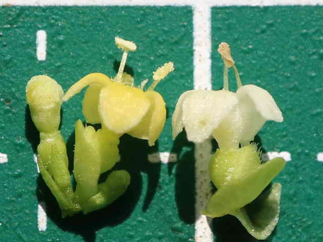 | ▼白色と黄色の花が混じる。 | ▼雄しべは2個しか確認できない。 | |