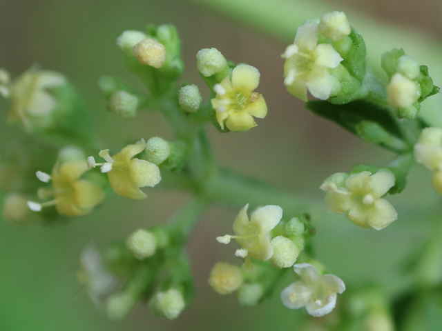 | ▼2018年9月18日 八雲 | ▼小さな白色と黄色の花が混在する。 | ▼雌しべ1個と2個の雄しべがある。 |