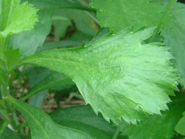 | ▼中部の葉の様子。 | ▼下部の葉は大きい。 | |