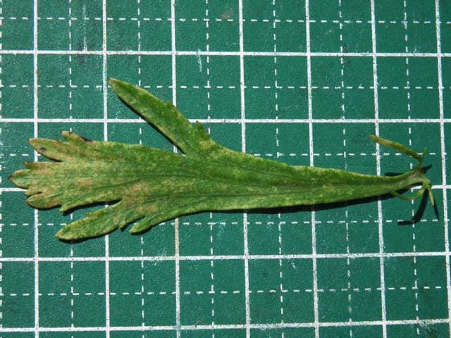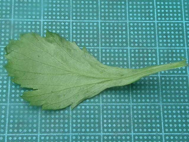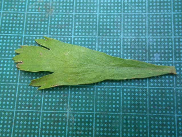 | ▼下部の葉は長さ約6cm。 | ▼葉の表面は無毛。 | ▼葉の裏面。 |