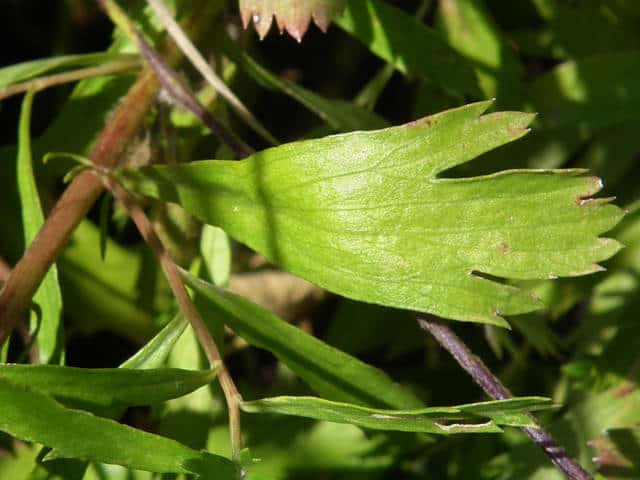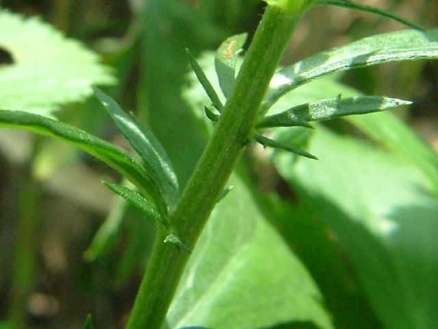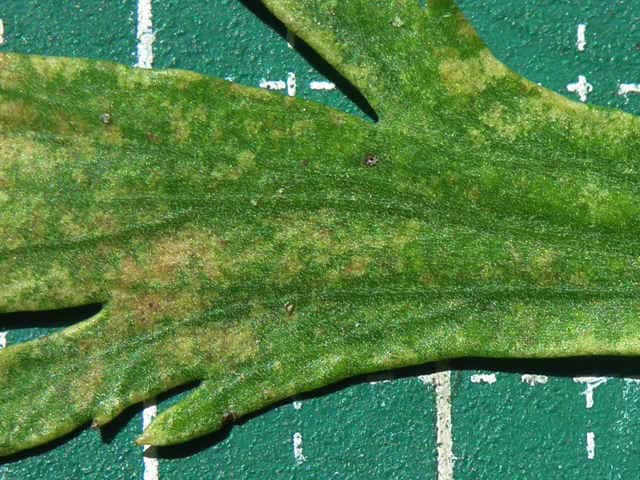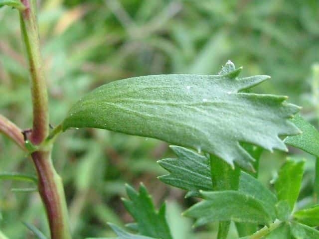 | ▼下部の葉は上部が切れ込む。 | ▼表面は無毛。 | |