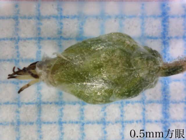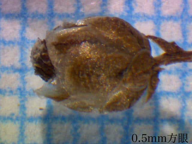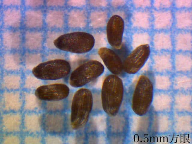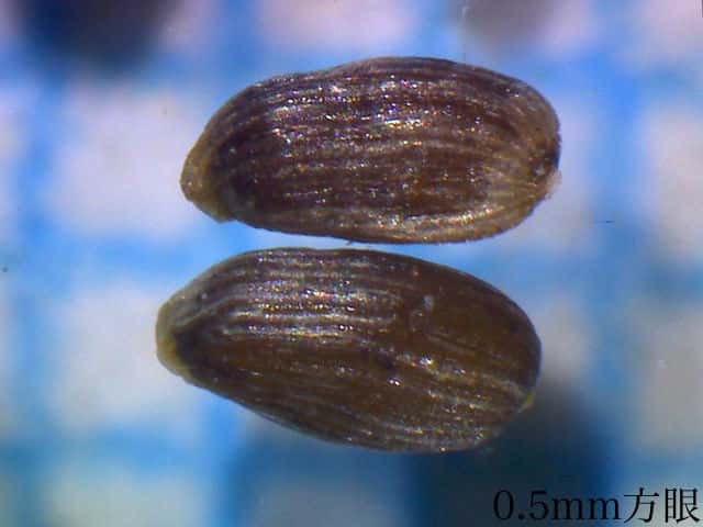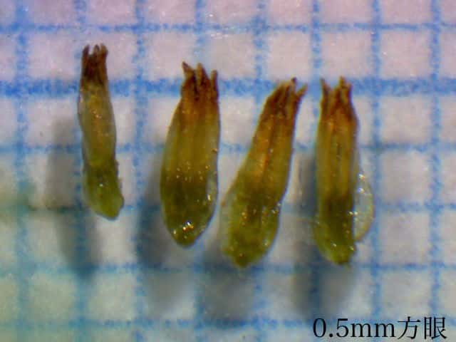 | ▼総苞は長さ約2mm。 | ▼果実は0.8〜1mm。 | ▼表面に線形の模様がある。 |