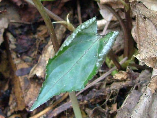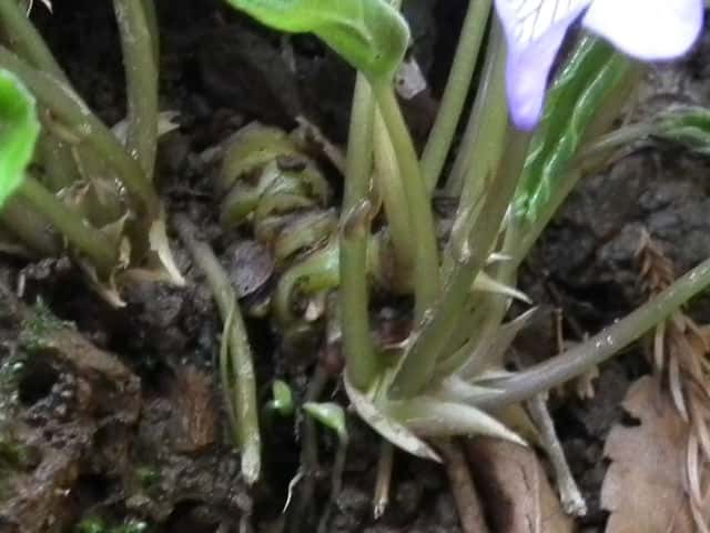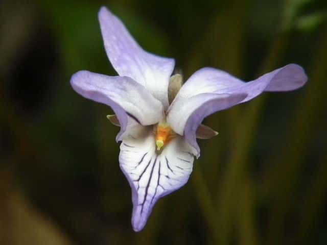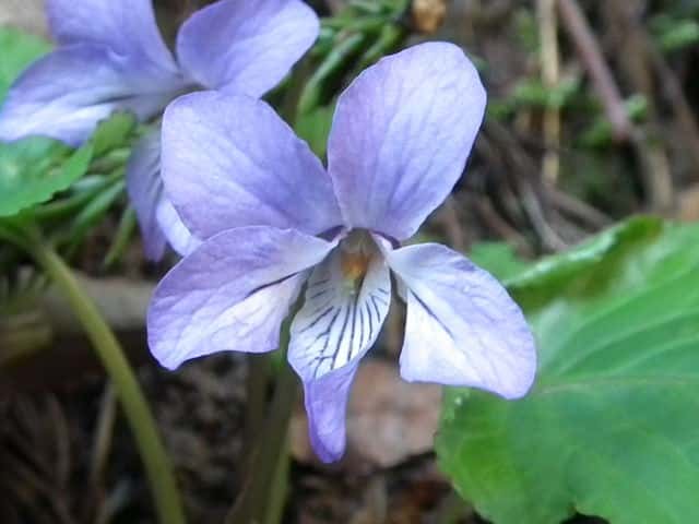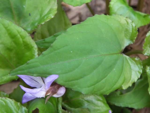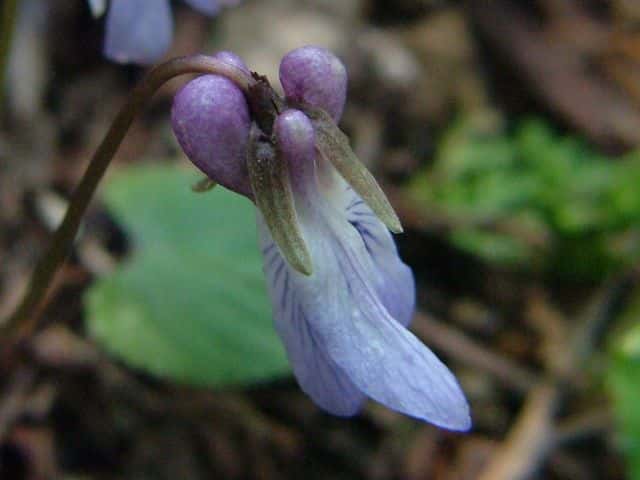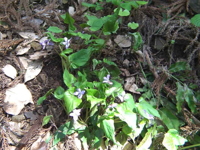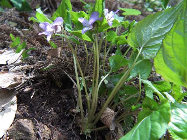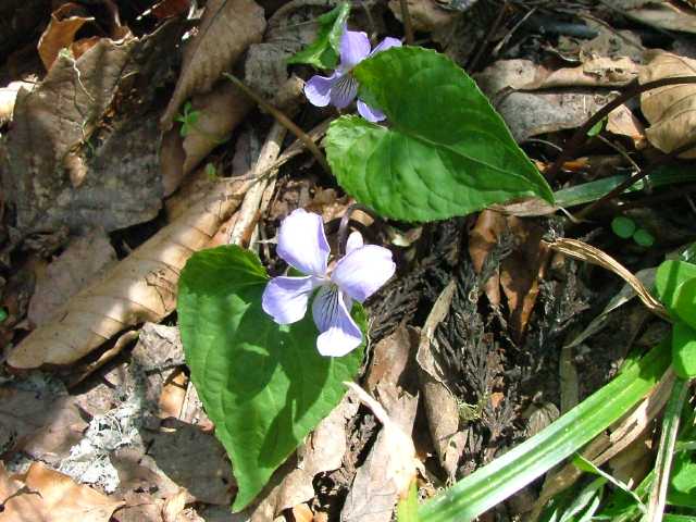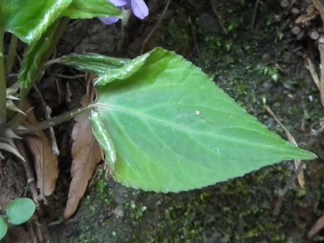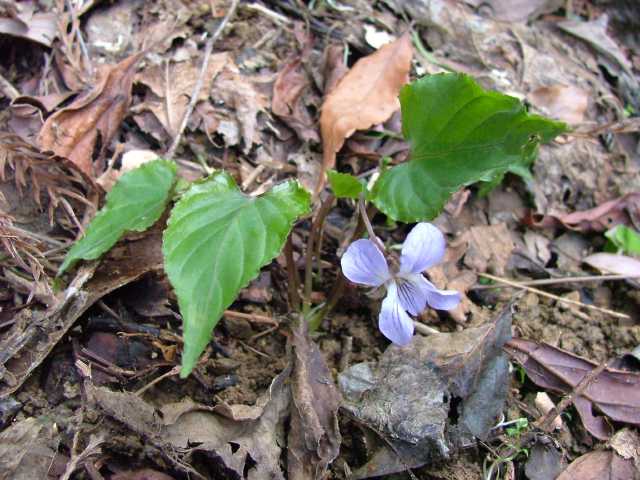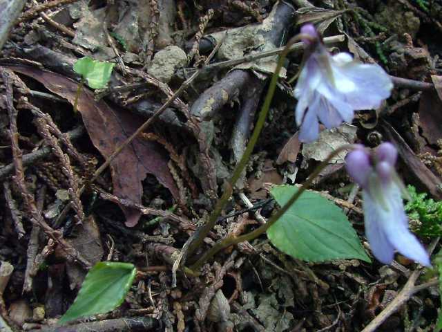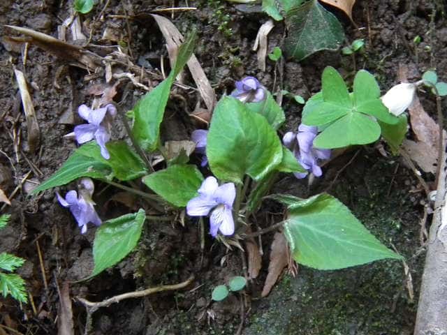| 多年草 北海道西部〜山口県までの日本海側のあまり高くない山地が主体で、半日陰の落葉樹林下などを好む。草丈は5〜15cm。葉は先がつまんだようにとがった心形で長さ5〜8cm。両面とも緑色で、やや厚く、ほとんど無毛。花期には基部がよく展開していないことが多い。花のあとの葉は大型になる。花は直径2〜2.5cmで淡紫色。側弁は無毛。雌しべの柱頭はくちばし状に長くなる。托葉が葉柄から離生するのが、この仲間の特徴のひとつ。花期は4〜5月。(日本のスミレ) 学名は、Viola vaginata スミレ科スミレ属 スミレサイシンより葉が細長くなるなるものを、サンインスミレサイシン(Viola vaginata var satomii, nom. nud)として区別する見解もあるが、さまざまな形の葉が同一株から出ていることもよくあり、その形態は連続的である。(近畿地方のスミレ類 -その分布と形態-) スミレの分類 |
