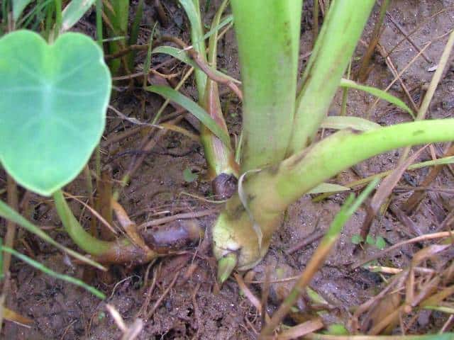 | 「農耕の技術」10号青葉 高「石芋伝説のサトイモについて」 (1987)の中で紹介された松江市上大野町に古くから生えているサトイモ。 |