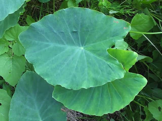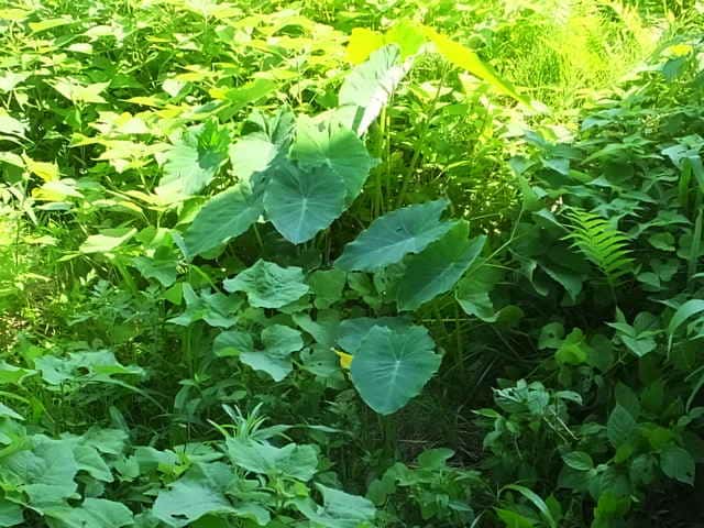 | ▼2016年6月27日 芋の谷 上大野 | ▼湧き水のある小さな泉に生える伝説のサトイモ。 | |