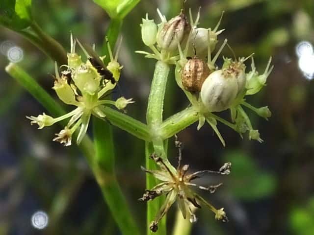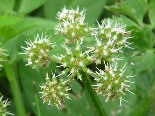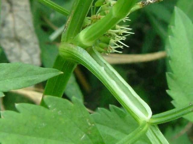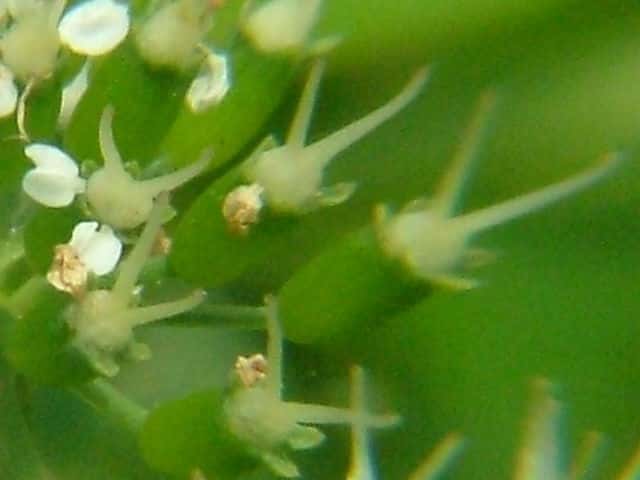 | ▼雄しべのある雄性期の花。 | ▼総苞片がある。 | ▼小総苞片がある。 |