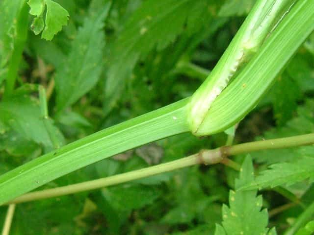 | ▼茎には稜がある。 | ▼上部の茎(左)は三角状〜下部の茎(右)。 | |