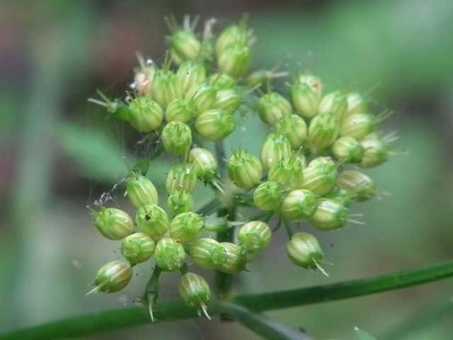 | ▼果実は2分果からなる。合生面(右) | ▼分果の横断面、隆条は太く低い。 | |