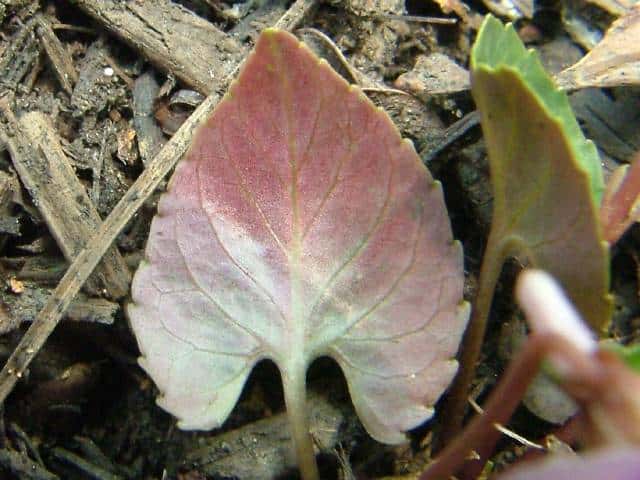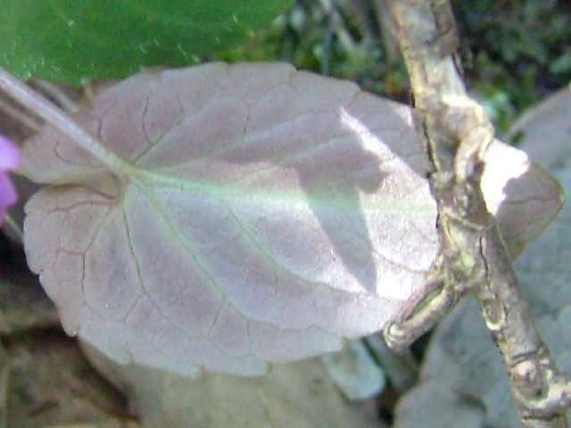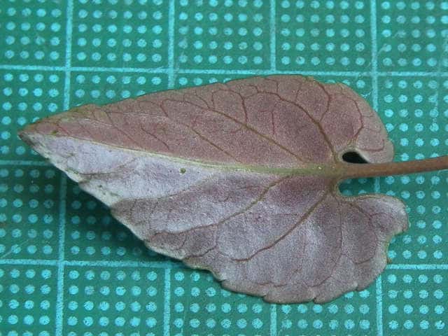 | 葉が黒紫色になるものはハグロシハイスミレ(通称)と呼ばれる。 | ||