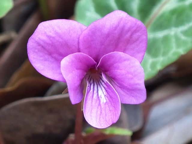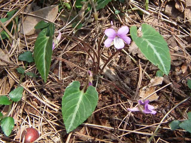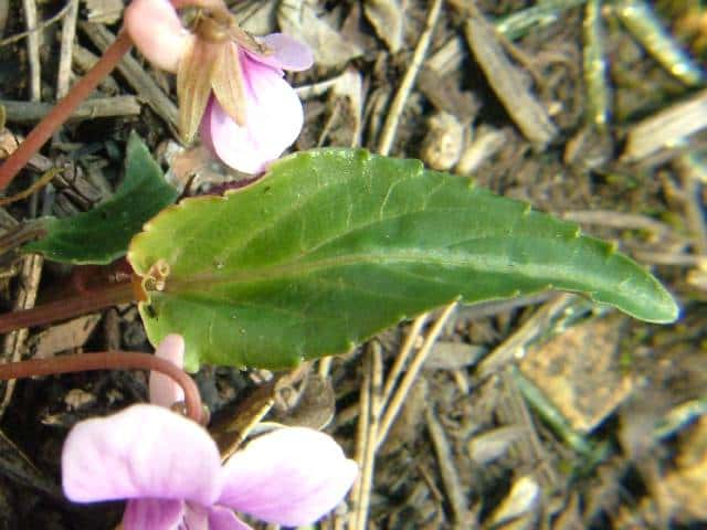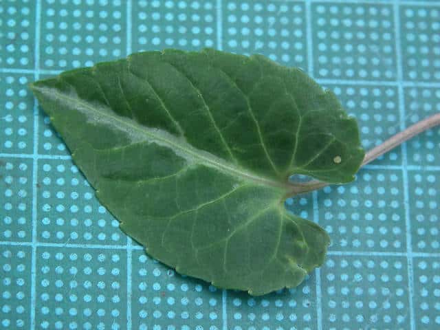 | 葉に斑が入るものはフイリシハイスミレ(f.versicolor)という品種に分類される。 | ||