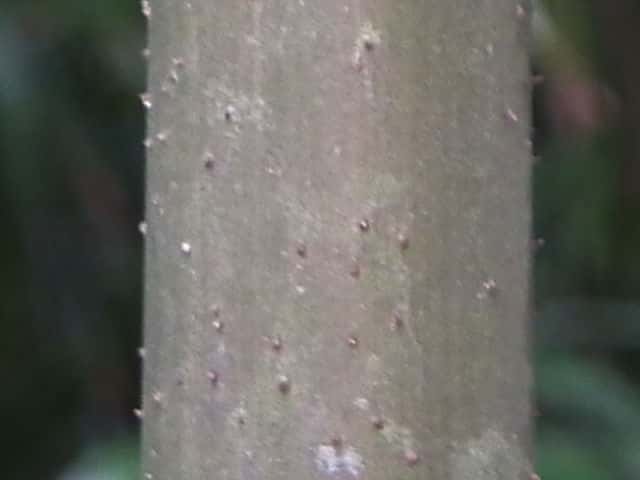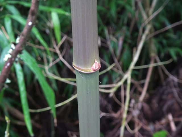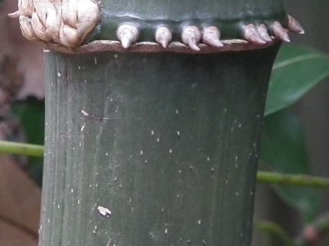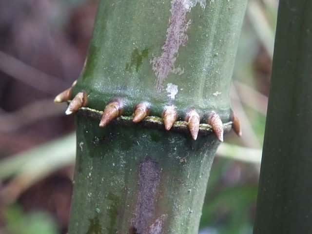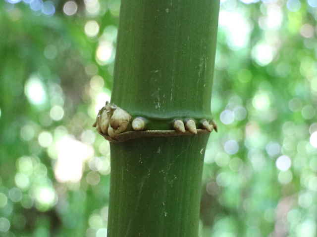 | ▼2019年9月14日 殿 | ▼節から3本の枝を出す。 | ▼節にいぼ状の気根、稈面に小突起がある。 |