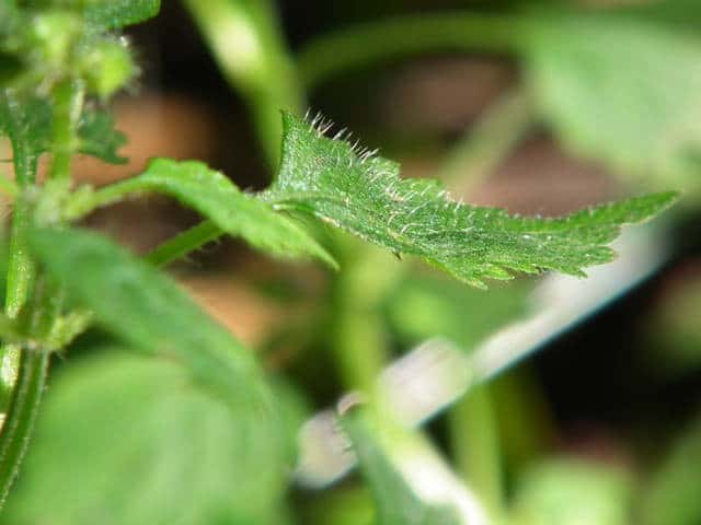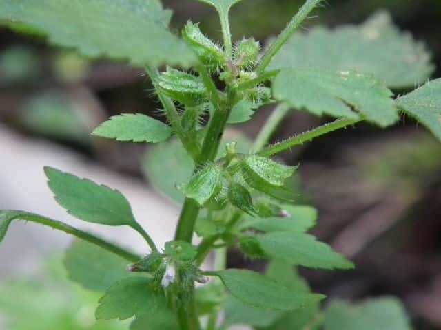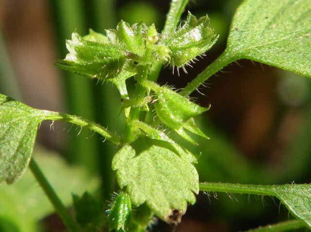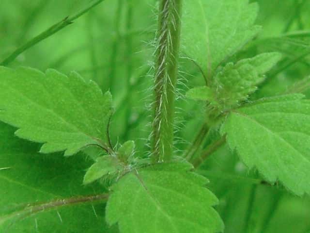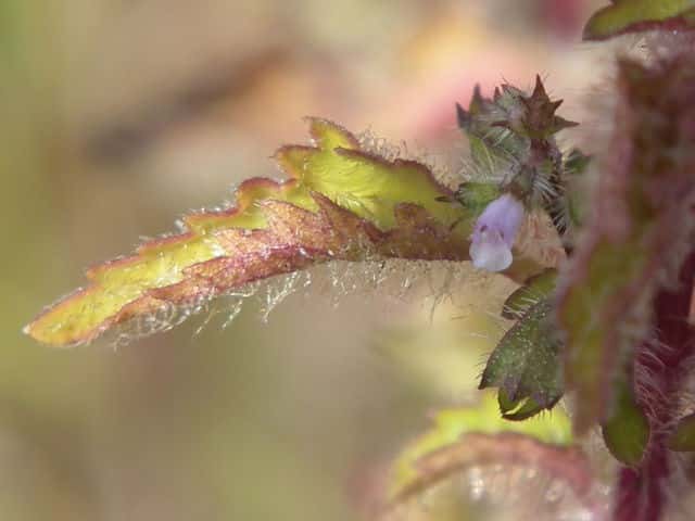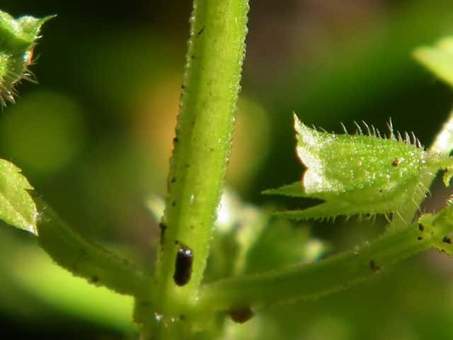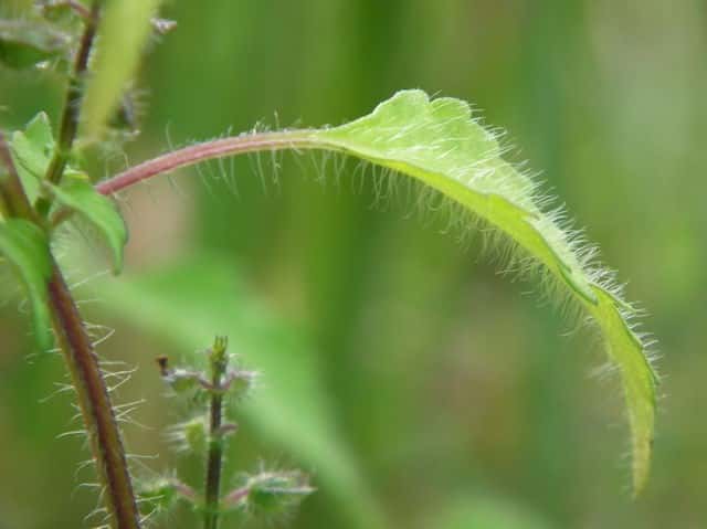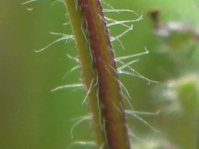 | ▼裏面に毛がある。 | ▼茎には曲がった短毛がある。 | |