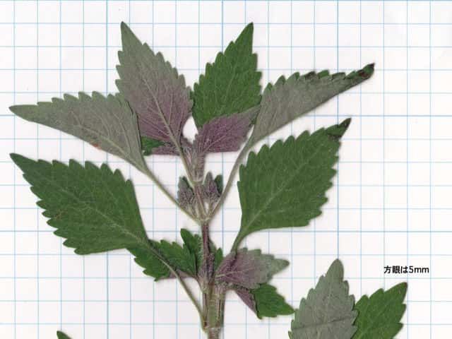 | ▼葉の両面に毛が多い。 | ▼葉身は長さ約4.5cm。 | |