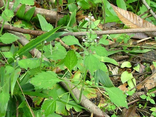 | 1年草 本州〜九州の林のふちなどに生える。高さ20〜50cm。茎には長い軟毛がある。葉はヒメジソよりやや大きくて薄く、長さ3〜5cm、幅1.5〜3cm。表面には長い軟毛が生え、裏面には腺点が目立つ。枝先に花穂をだし、淡紅紫色の小さな唇形花をつける。萼の上唇の裂片の先はやや鋭い。花期は9〜10月。(野に咲く花) 学名は、Mosla hirta シソ科イヌコウジュ属 専門家によっては、ヒメジソは変異が大きく、シラゲヒメジソと区別できないとの見解もある。 |
