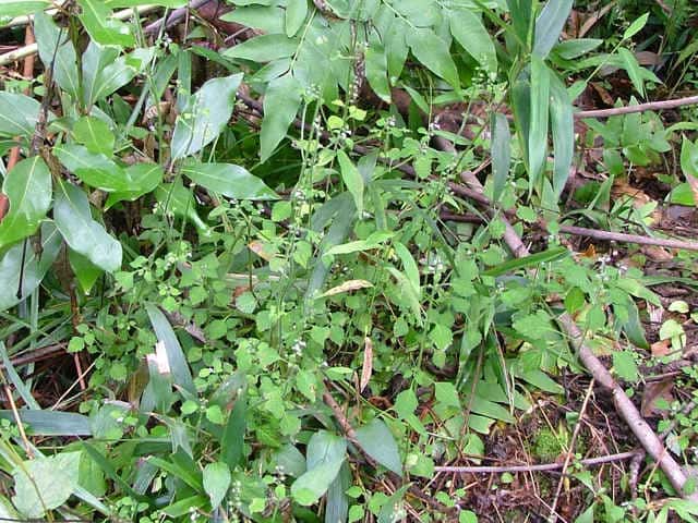 | ▼果実は直径約1mm。 | ▼葉の表裏に長毛がある。 | ▼茎、葉柄に開出する長毛が密生する。 |