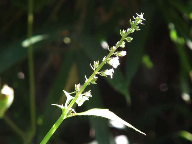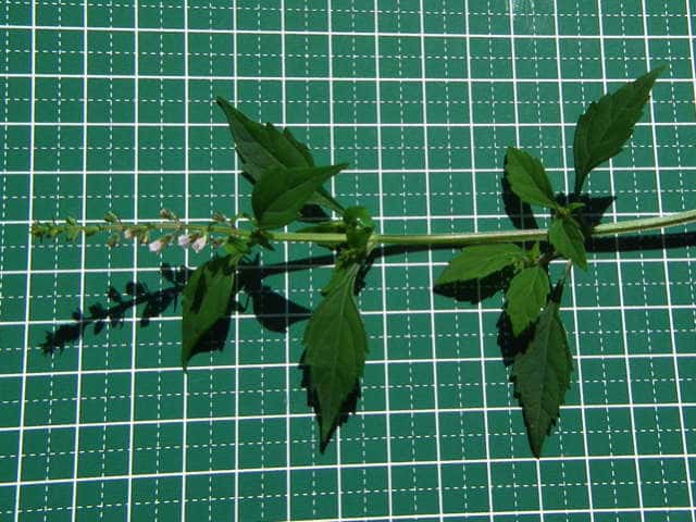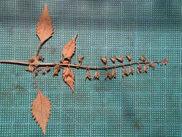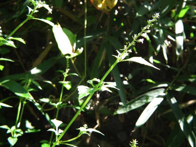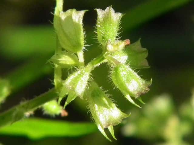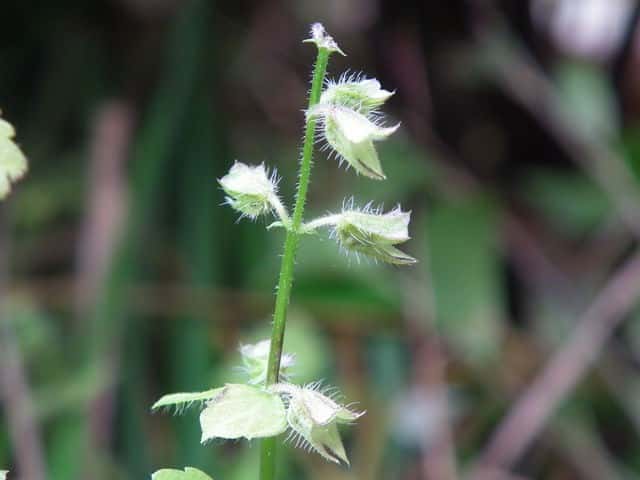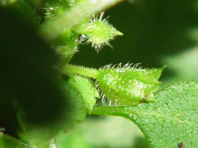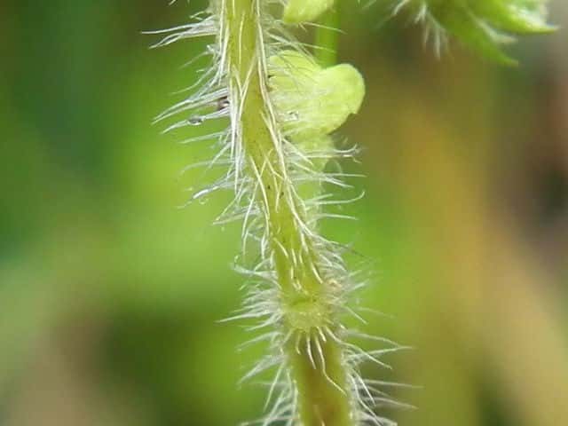 | ▼茎には下向きに曲がった短毛があるのみ。 | ▼果穂が長さ1cm程度と短い。 | |