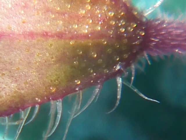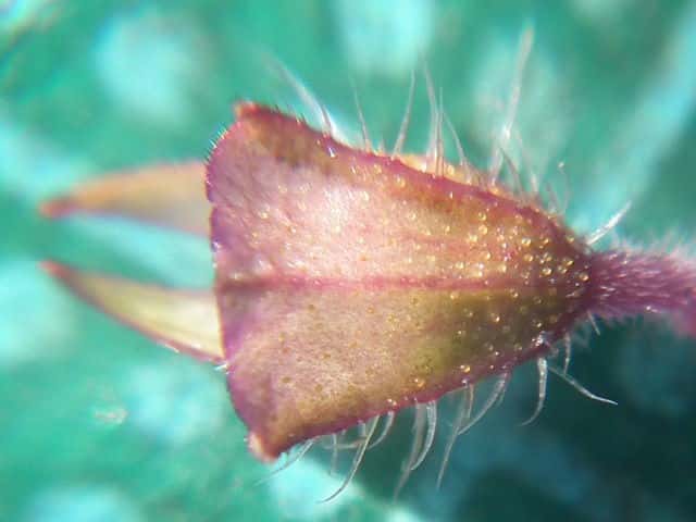| ▼腺点の拡大。 | ▼茎に開出する長毛と曲がった短毛がある。 | ▼長い毛は長さ約2mm。 |