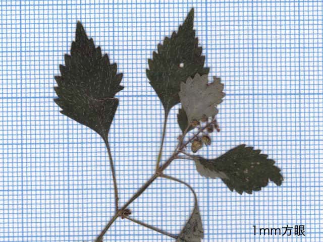 | ▼葉身は長さ約2.5cm、鋸歯が片側8個ある。 | ▼葉の表面に長毛がある。 | |