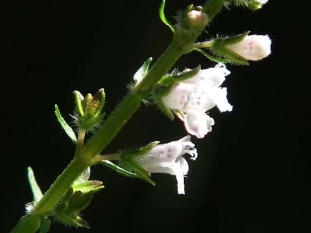 | ▼葉の表裏に長毛がある。 | ▼▼葉の裏面は腺点が目立つ。 | ▼茎には長毛がある。 |