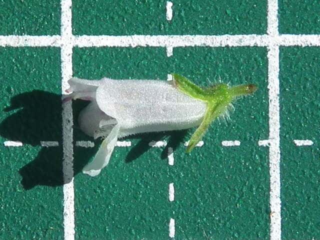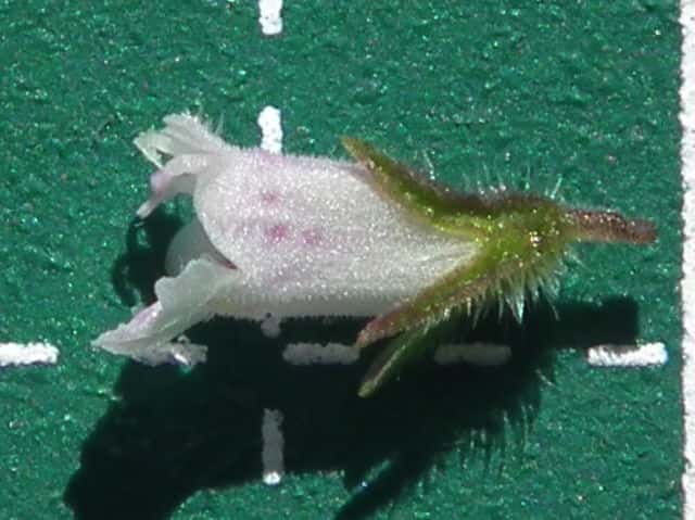 | ▼萼の裂片がほとんど裂けていない。 | ▼萼の腺と長毛。 | |