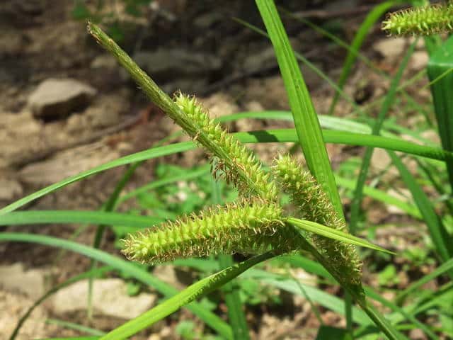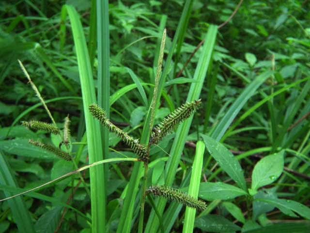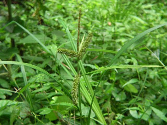 | ▼2012年6月26日 東長江 | ▼雌小穂は斜上や下垂するものがある。 | ▼雌小穂は長さ約5cm。 |