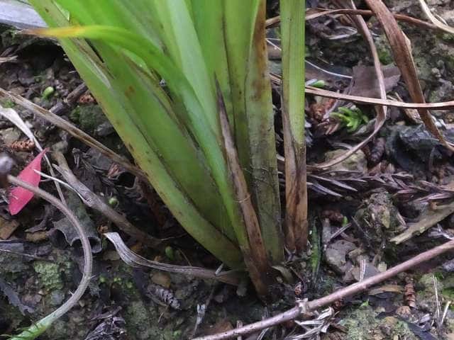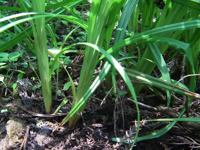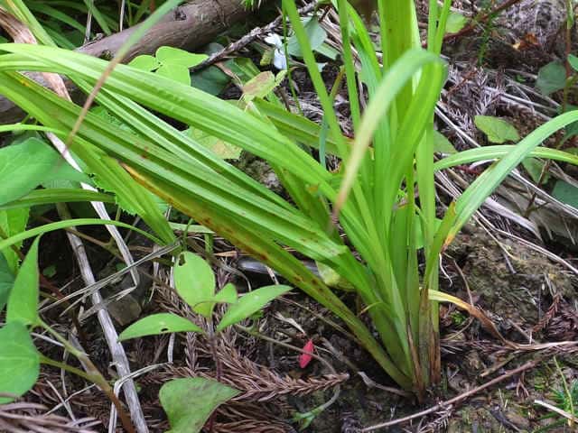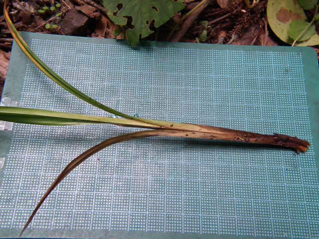 | ▼基部の鞘は葉身がない。 | ▼花序の先まで長さ約35cm。 | |