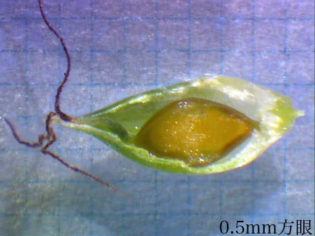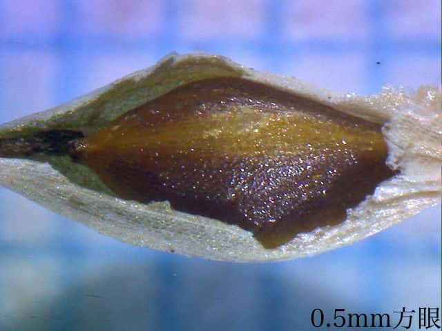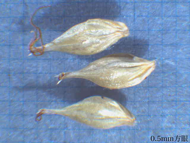 | ▼果実は長さ約1.7mm。 | ▼苞は無鞘。 | |