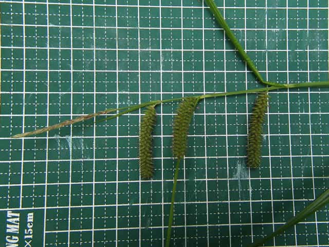 | 雌小穂が斜上しているので、シラスゲの雌小穂があまり垂れ下がらない型なのかもしれない。 | ||