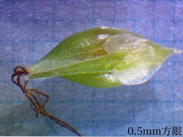 | ▼果胞は長さ3mm。 | ▼柱頭は3岐する。 | ▼口部は2歯がある。 |