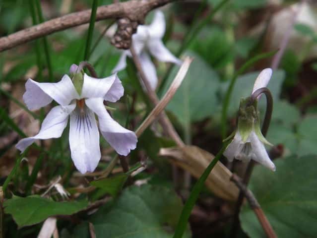 | 多年草 北海道〜九州の人里周辺に多い。コスミレ、ヒゲコスミレの白花品種。地上茎はない。葉はやや丸みのある長さ2〜6cmの長三角形〜長卵形。表面は白く濁った緑色。裏面は紫色を帯びるものもある。毛の状態は様々で、全体に微毛が生えるものもある。花は直径1.5〜2cmで白色。側弁の基部は無毛または有毛。距は円筒形でやや長い。雌しべがよく見える開き方をする。花期は4〜5月。 学名は、Viola japonica f. albida スミレ科スミレ属 スミレの分類 |