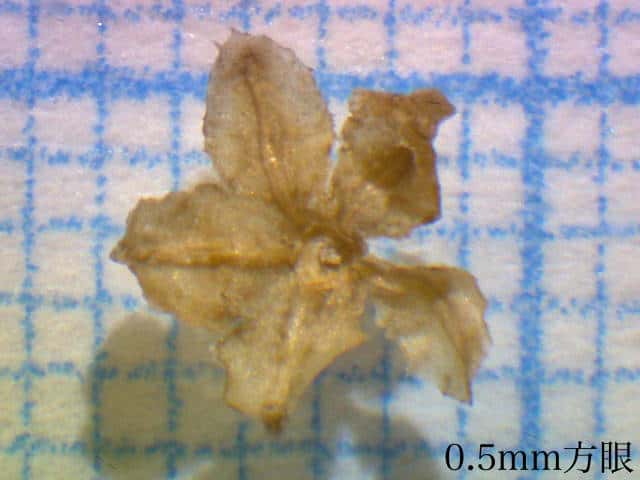 | ▼花被に包まれた果実は直径約2mm。 | ▼果実は5個の花被に包まれている。 | ▼果実を包んでいた花被。 |
