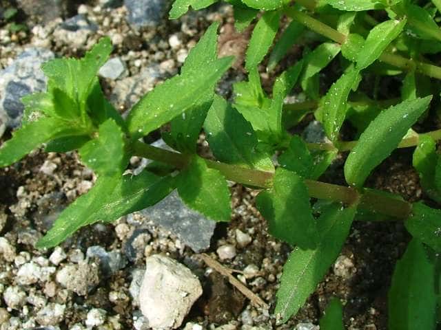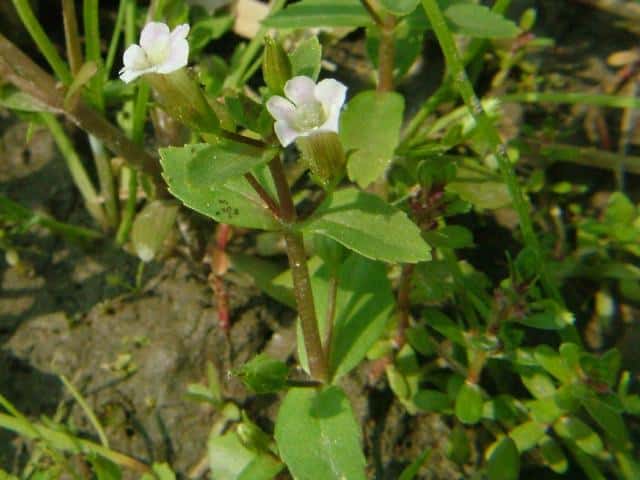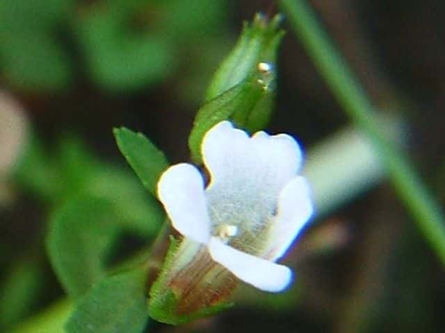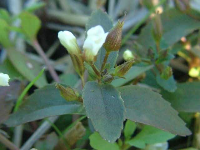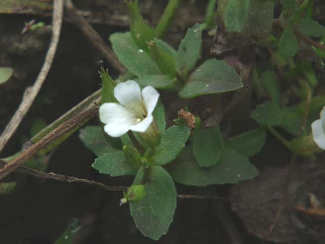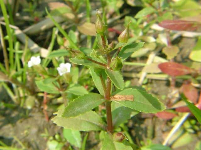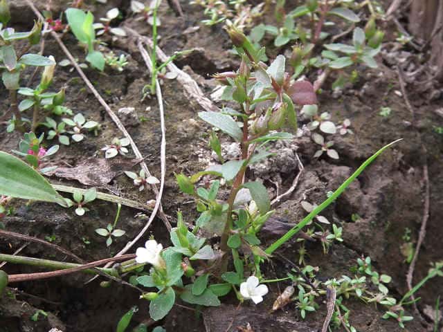 1年草 本州〜沖縄の水田や湿地に生える。シソの香りがある。茎は軟かくて円く、高さ15〜25cm、基部はやや横にはい時に分枝する。葉は対生で時に3枚輪生し、長さ1.5〜3cm、幅3〜7mmで軟かく毛はなく、裏には腺点がある。花は上部の葉腋につき花柄は長さ7〜15mm、萼の基部に小形の少苞がある。萼は長さ5〜7mmで5中裂し、裂片は披針形。。花冠は長さ約1cm。雄しべは4本で、2本は短い。さく果は広卵形で、種子は小さく、長さ1/3mm、長方形で黒い。花期は9〜10月。(原色日本植物図鑑) 学名は、Limnophila chinensis subsp. aromatica オオバコ科シソクサ属 |