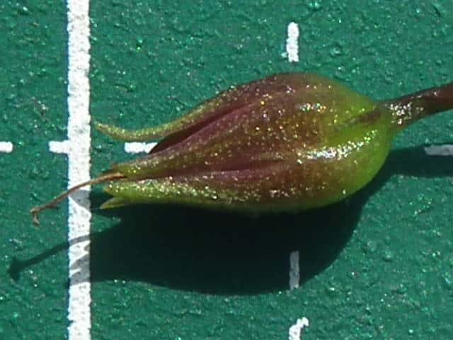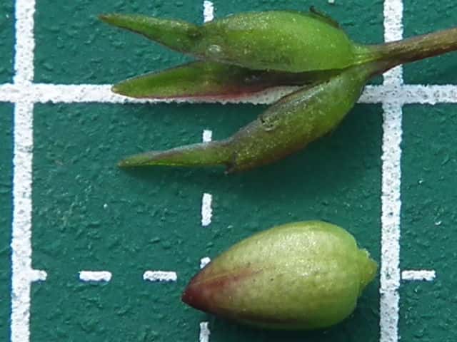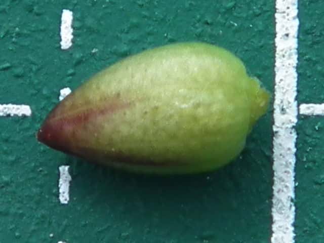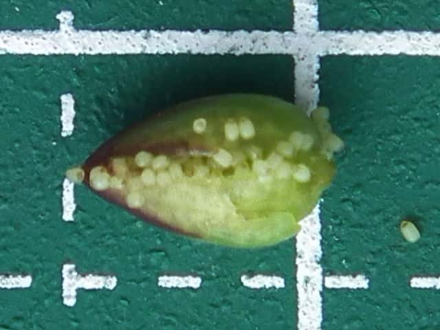| ▼萼から外した果実は、長さ約5mm。 | ▼果実の縦断面。 | |