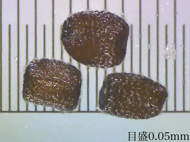 | ▼種子は長方形。 | ▼種子は長さ0.3〜0.4mm | ▼表面には格子模様がある。 |