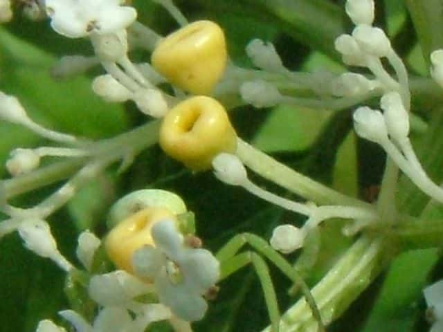 | ▼2009年8月29日 福原 | ▼花序の所々に黄色の杯状の腺体がある。 | |