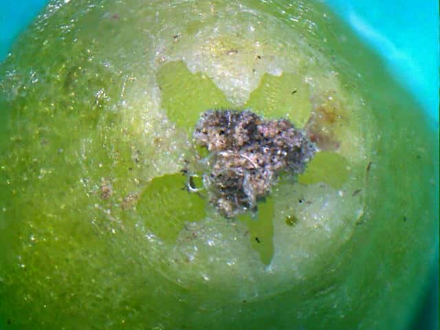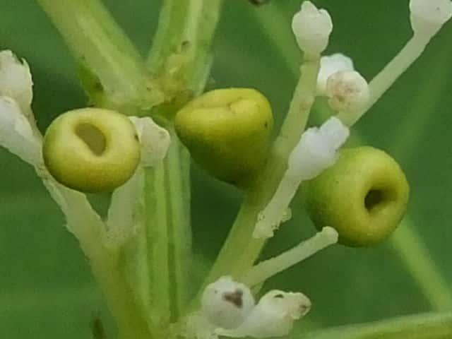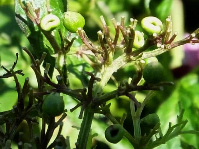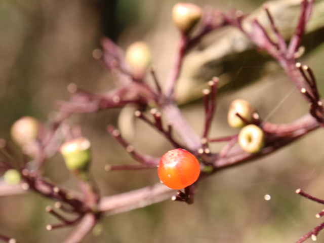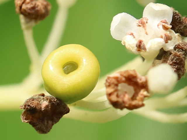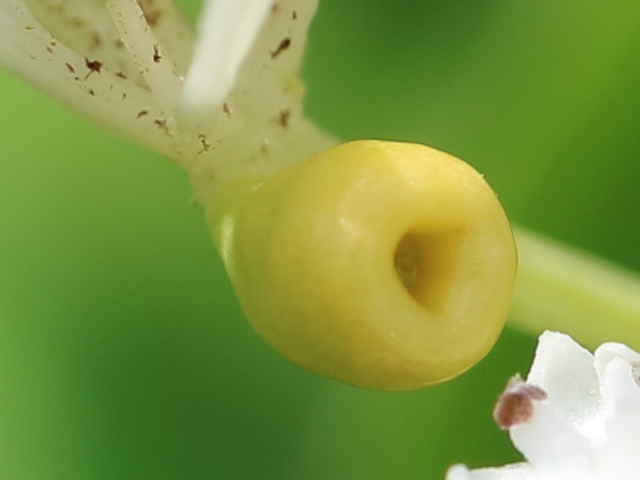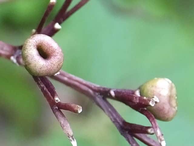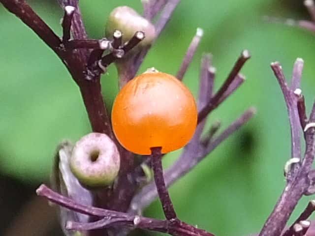 | ▼枯れた腺体。 | ▼果実は直径約4.5mm、先端に萼が残る。 | |