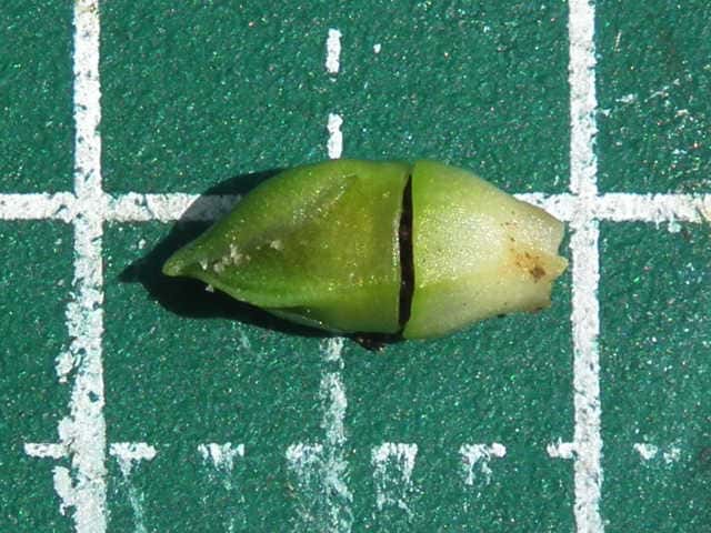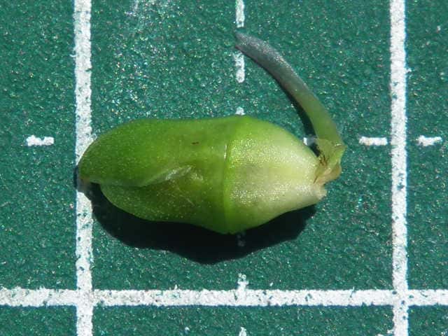 | ▼果実の上部は2個の萼に包まれている。 | ▼果実の上部がとれ種子がでる。 | |